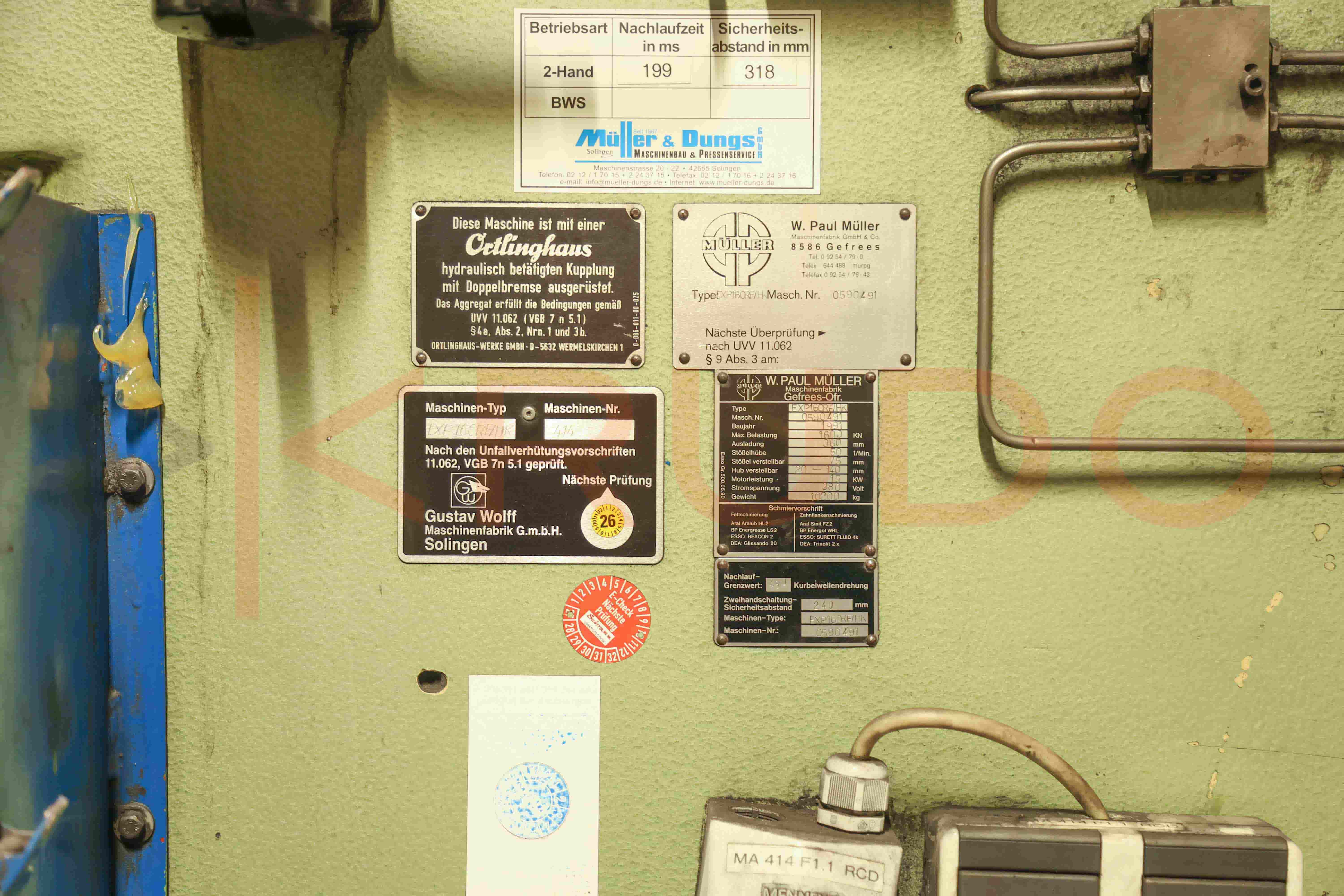 Manufactured in 1991, this Paul Müller press delivers a robust 160-ton capacity with an adjustable stroke range of 20 to 140 mm for versatile production needs.
