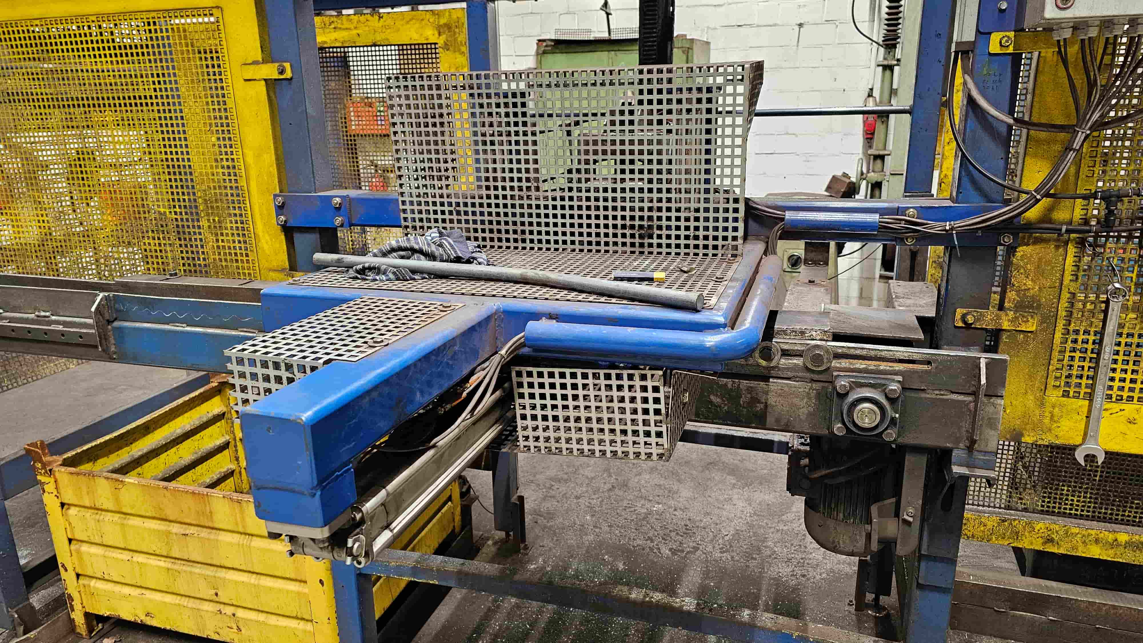 It's designed for the controlled collection and orderly stacking of cut bars after the shearing process.