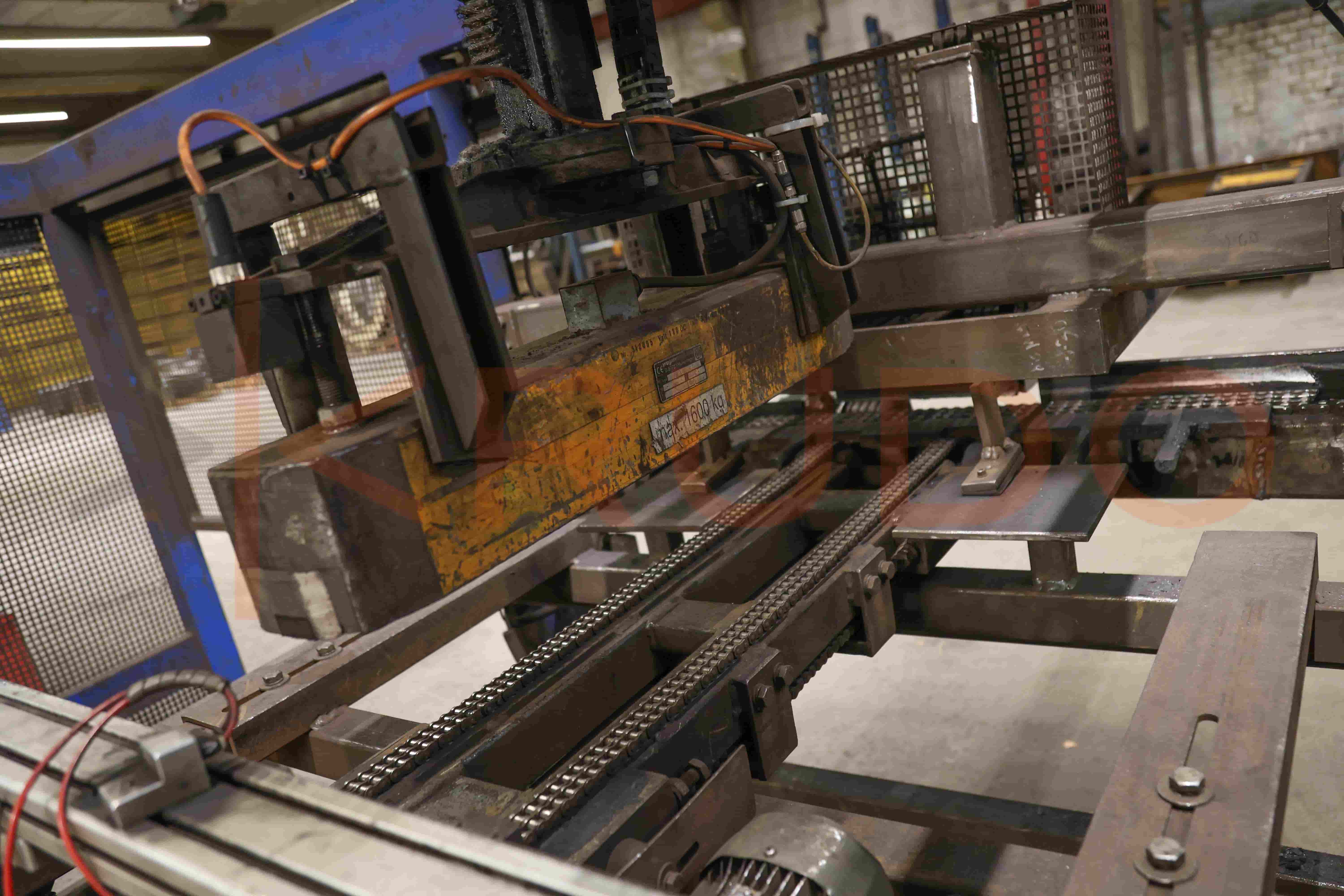 It's designed for the controlled collection and orderly stacking of cut bars after the shearing process.