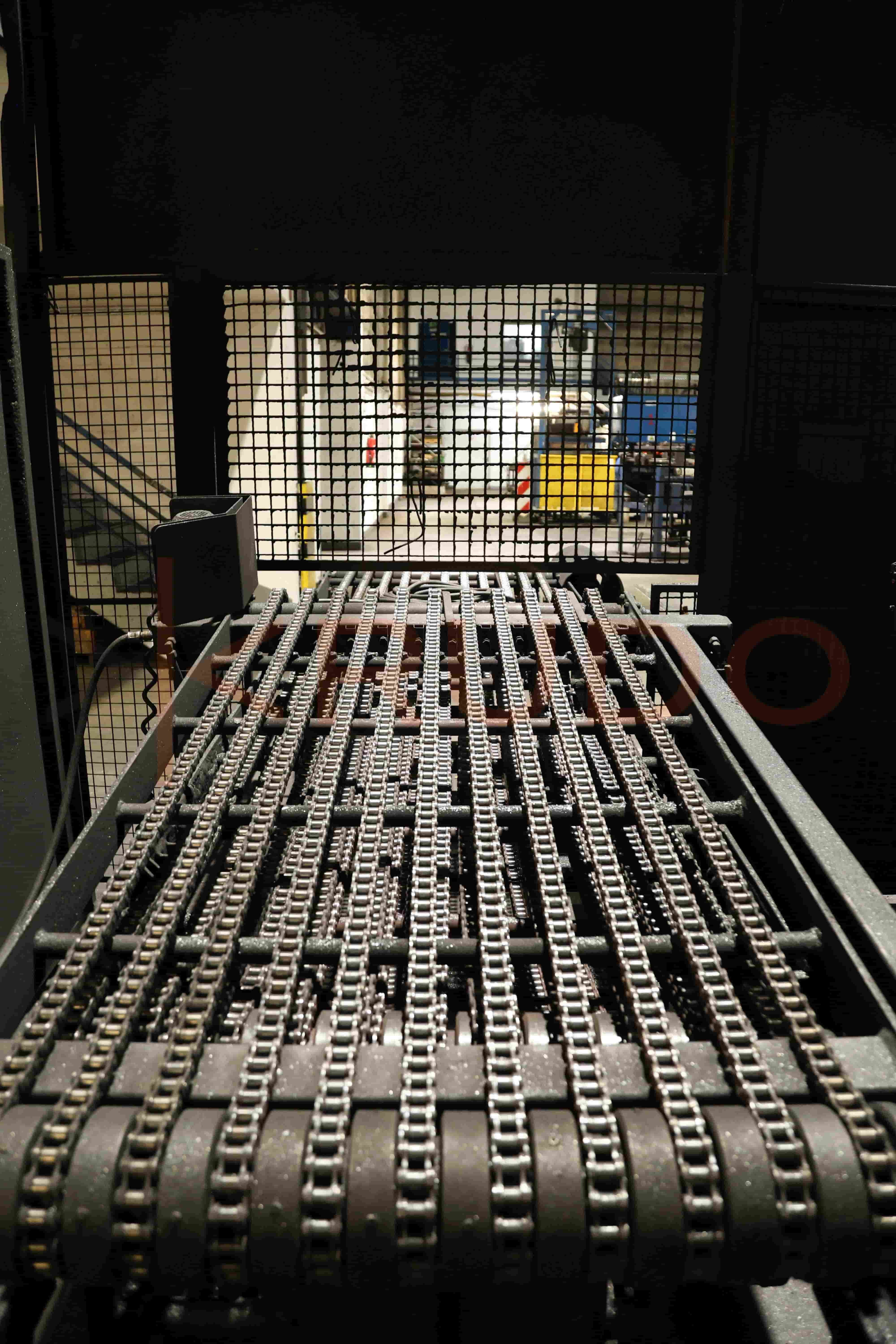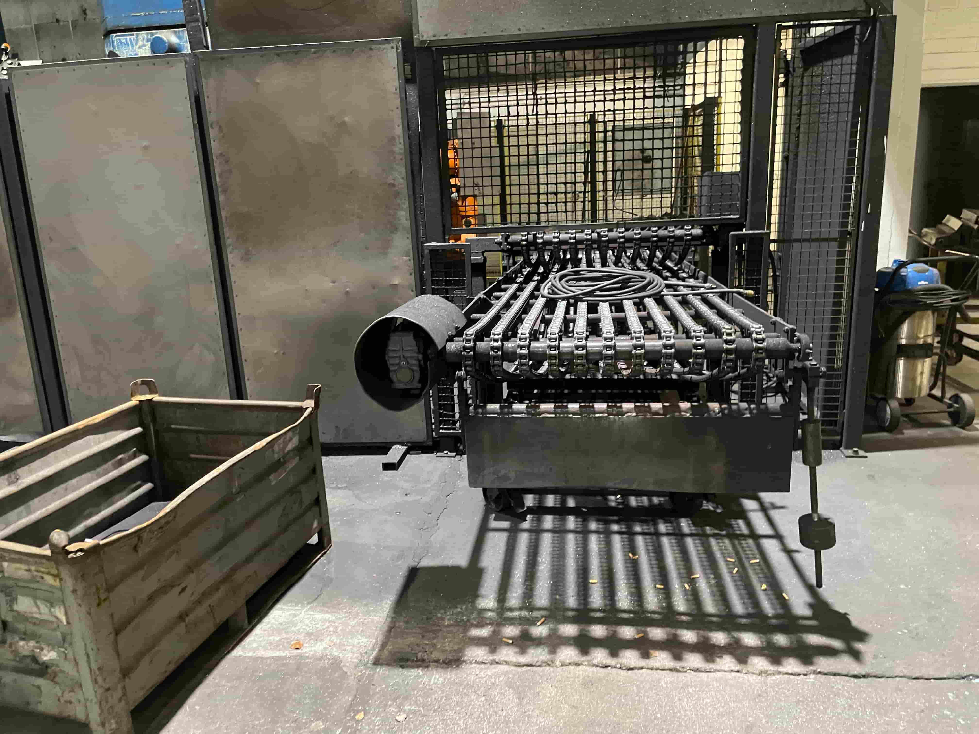 The dispension (output) station performs controlled discharge and collection of forged parts at the end of the production line.