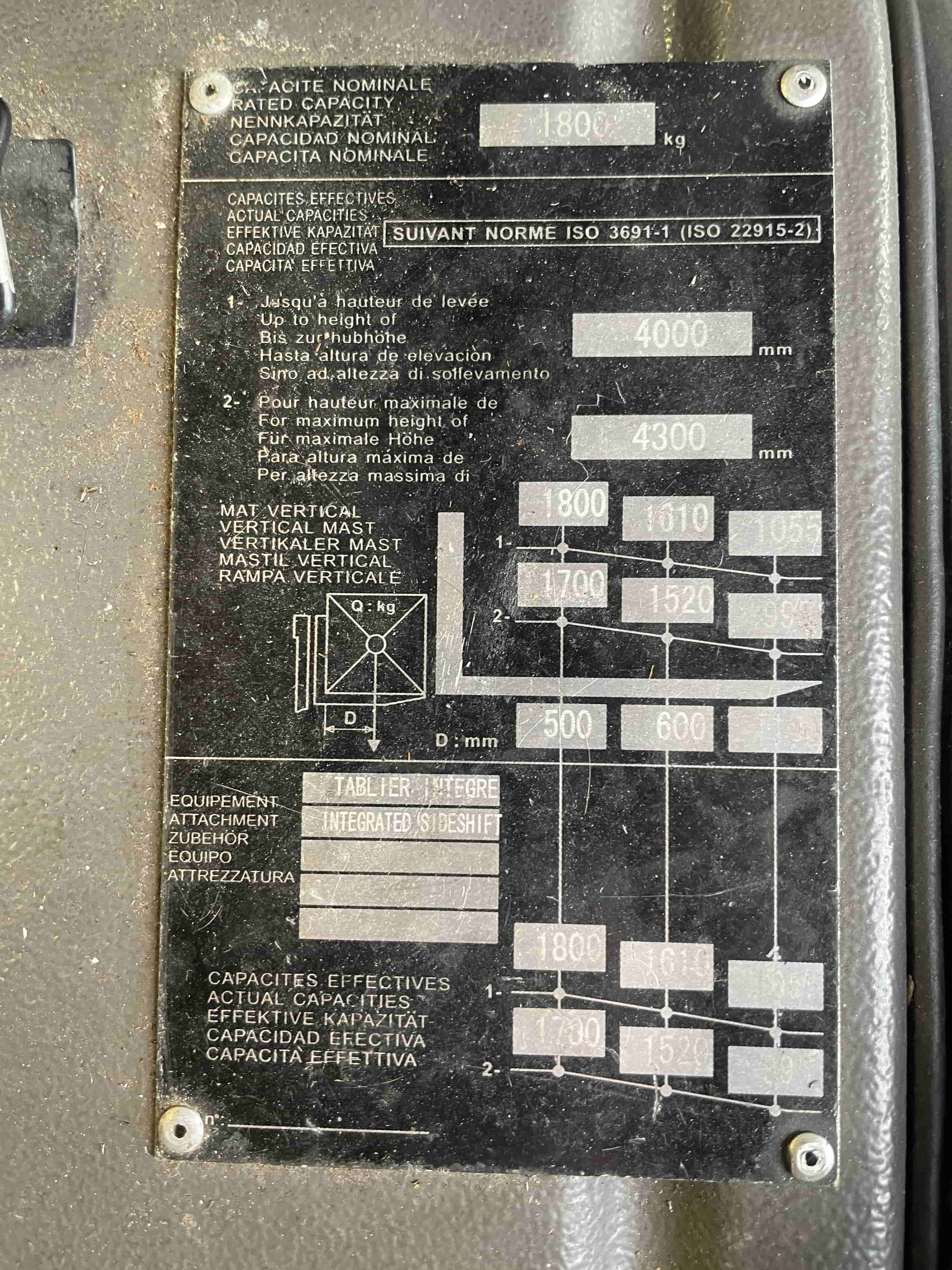 - Max. lift height: 4300 mm (Nominal: 4000 mm)