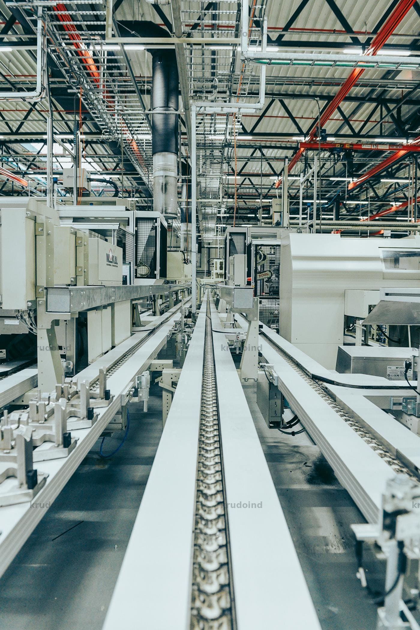 Pallet conveyor system that efficiently moves pallets through production stages, supporting smooth material handling and workflow continuity.