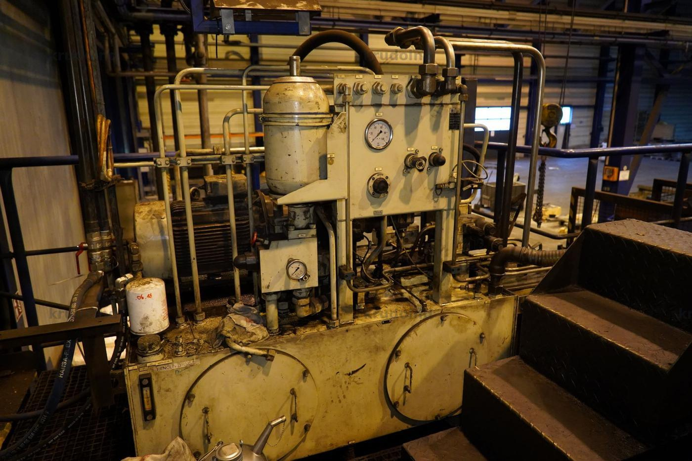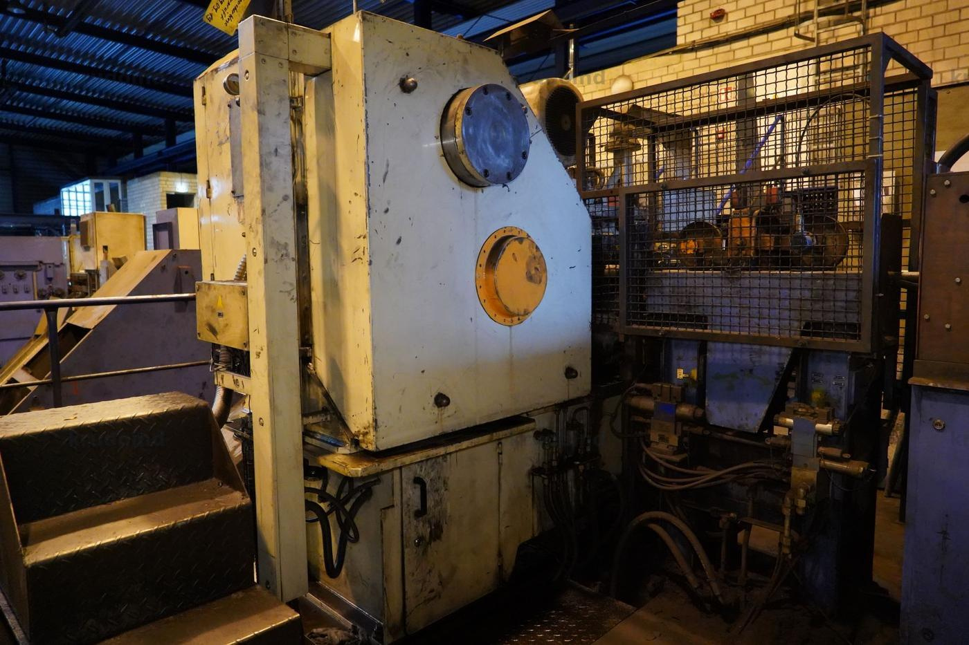 This high-capacity bar shear provides 2,000 kN of nominal force for cutting raw steel material up to 40 mm in diameter and 10 meters in length. It features an automated feeding system and is integrated for use with inductive pre-heating processes.