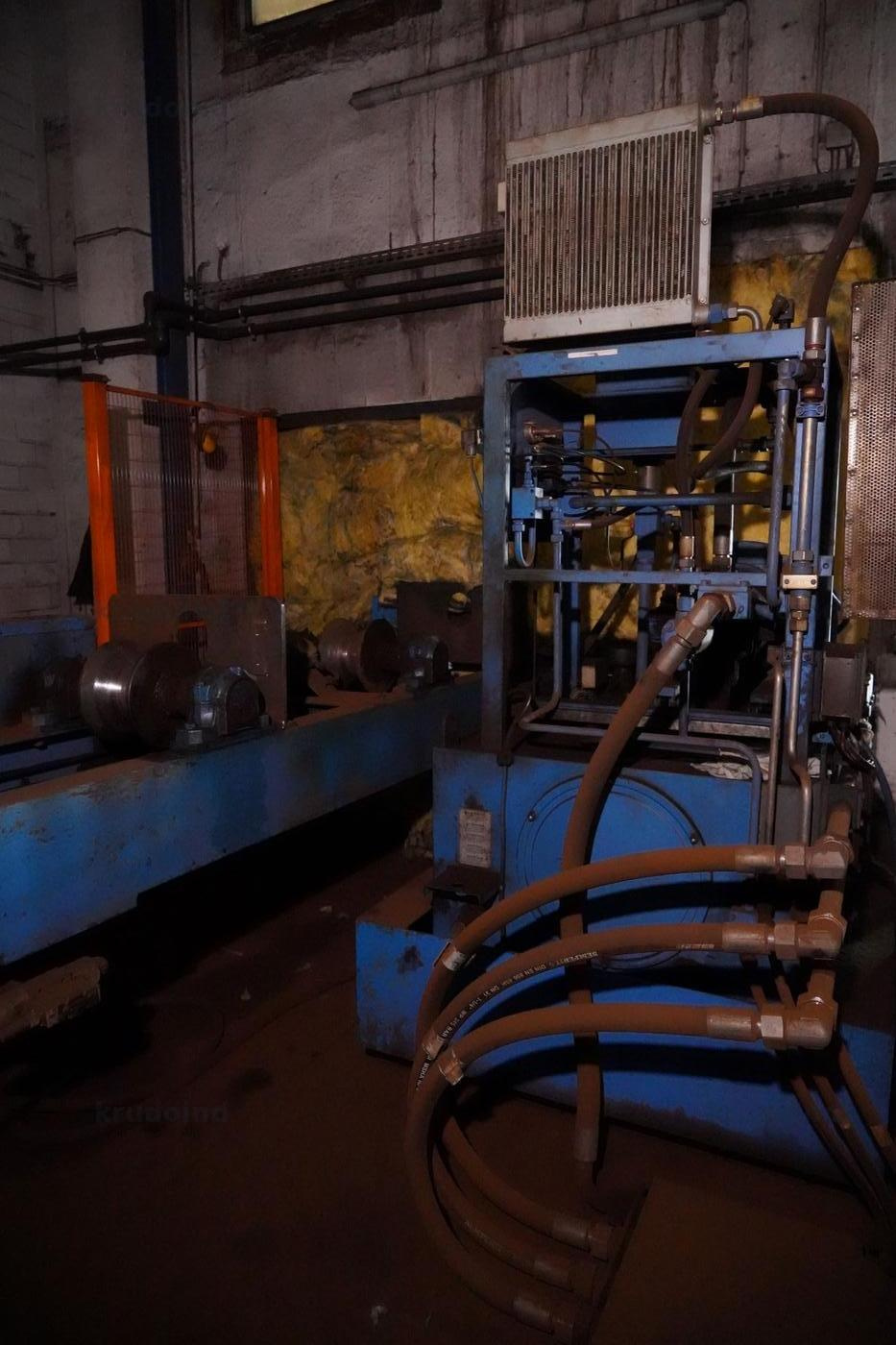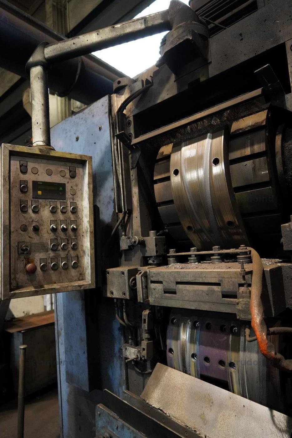 Shearing machine that cuts steel bars to precise lengths, ensuring consistent feed material for the forging line.